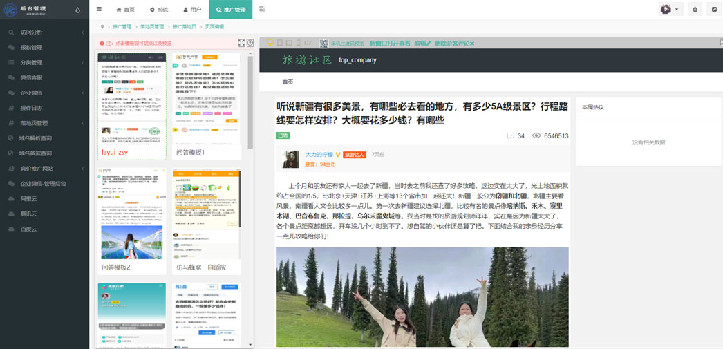 从页面内容修改→模板切换→客服轮流展示→加粉统计、实时访客→OCPC数据回传→手机端引导插件→域名绑定...等等,都可以在后台完成。