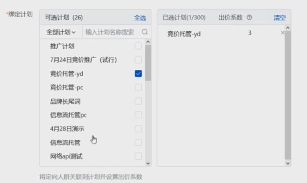 定向人群:在关键词已经覆盖的人群范围内,系统发现之前添加的人群范围时,会对此类人群提高出价。